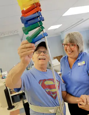 Larry’s certified occupational therapy assistant, Betty Heinold, HCR ManorCare, says new stroke therapies such as electrical stimulation, which uses a gentle electrical current to retrain muscle movement, can make a huge difference to stroke patients like Larry. “I’ve seen patients with limp wrists, who can be waving their arms after working through this therapy. It’s very rewarding to help patients get back home and independent as possible, and patients like Larry are just great to work with.”
