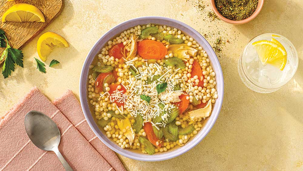A hearty solution, this Italian Penicillin Soup is ideal for those craving a filling meal after a chilly day. It’s loaded with rotisserie chicken, tender veggies, and pearl couscous simmered in broth, then finished with fresh lemon, Parmesan cheese, and parsley for a meal that’s as satisfying as it is appetizing.